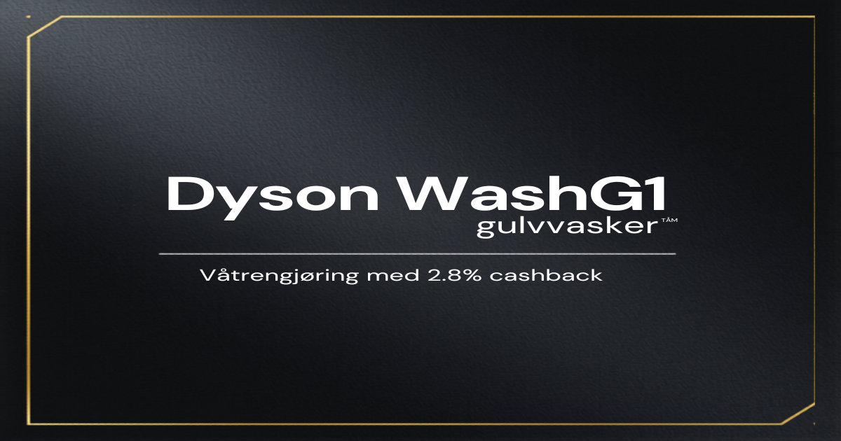 Gå til Dyson via Sparebørsen og få 2.8% cashback på WashG1. Med produkter til 5 499 kr er det 154 kr rett tilbake på kontoen din.