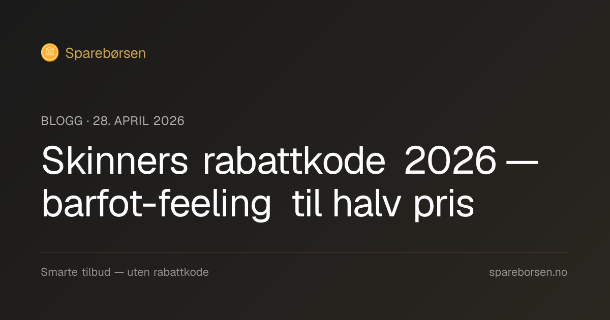 TL;DR: Skinners gir 9,1 % cashback via Sparebørsen i 2026 på sin unike sokkesko-kategori — produktene som fungerer som både sokk og sko, og gir barfot-feeling i terrenget. Bedre enn de fleste «Skinners rabattkode»-tilbud du finner på nett.